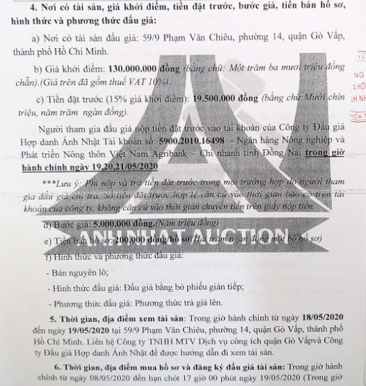 Năm sản xuất: 1994 - Năm hết niên hạn sử dụng 2019 - Giá khởi điểm: 130.000.000 đồng (Một trăm ba mươi triệu đồng chẵn, đã bao gồm VAT 10%)