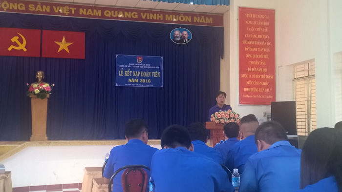 Ngày 15/10/2016, tại hội trường công ty, Đoàn cơ sở công ty TNHH MTV Dịch vụ công ích quận Gò Vấp tổ chức lễ kết nạp cho 5 bạn đoàn viên mới đứng vào hàng ngũ của Đoàn thanh niên cộng sản Hồ Chí Minh.