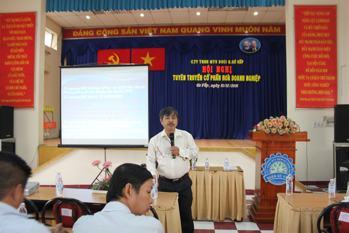 Hội nghị tuyên truyền được chia thành 2 đợt, phổ biến và giải đáp các nội dung liên quan đến Cổ phần hóa Công ty TNHH MTV Dịch vụ công ích quận Gò Vấp đến toàn thể Viên chức quản lý và người lao động tại công ty, kế hoạch tuyên truyền diễn ra vào 2 ngày, dự kiến hoàn tất trong ngày 24 tháng 12 năm 2016.