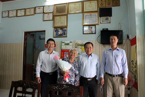 Đ/c Ngô Hệ Chính – Bí thư Đảng ủy / Chủ tịch Hội đồng thành viên công ty (Thứ 2 từ bên phải) cùng lãnh đạo Hội cựu chiến binh công ty đến thăm và tặng quà mẹ Việt Nam anh hùng Nhan Thị Hía mẹ của nữ liệt sỹ Nguyễn Thị Đức tại địa chỉ 59/4 đường số 53 Phường 14 quận Gò Vấp