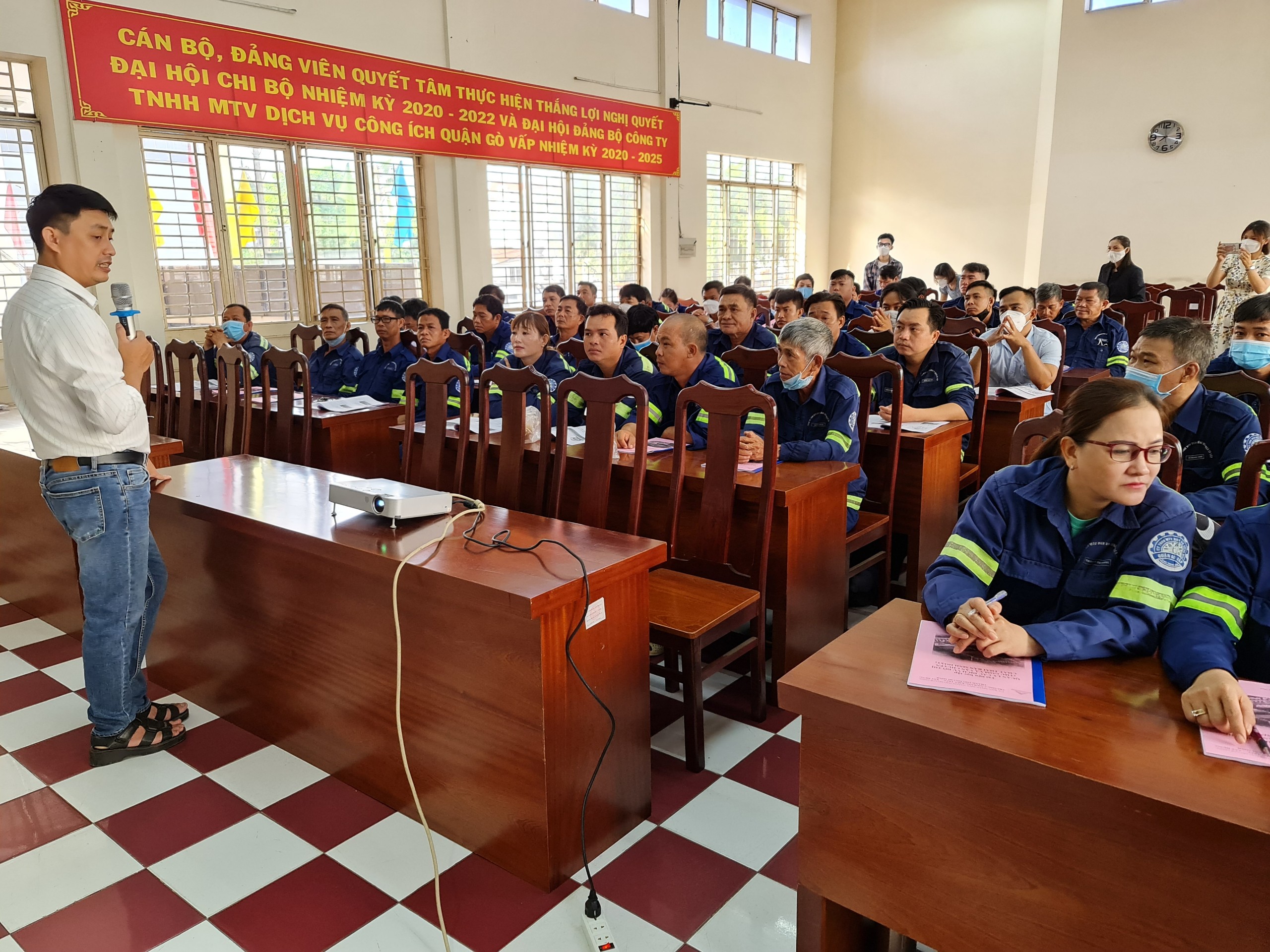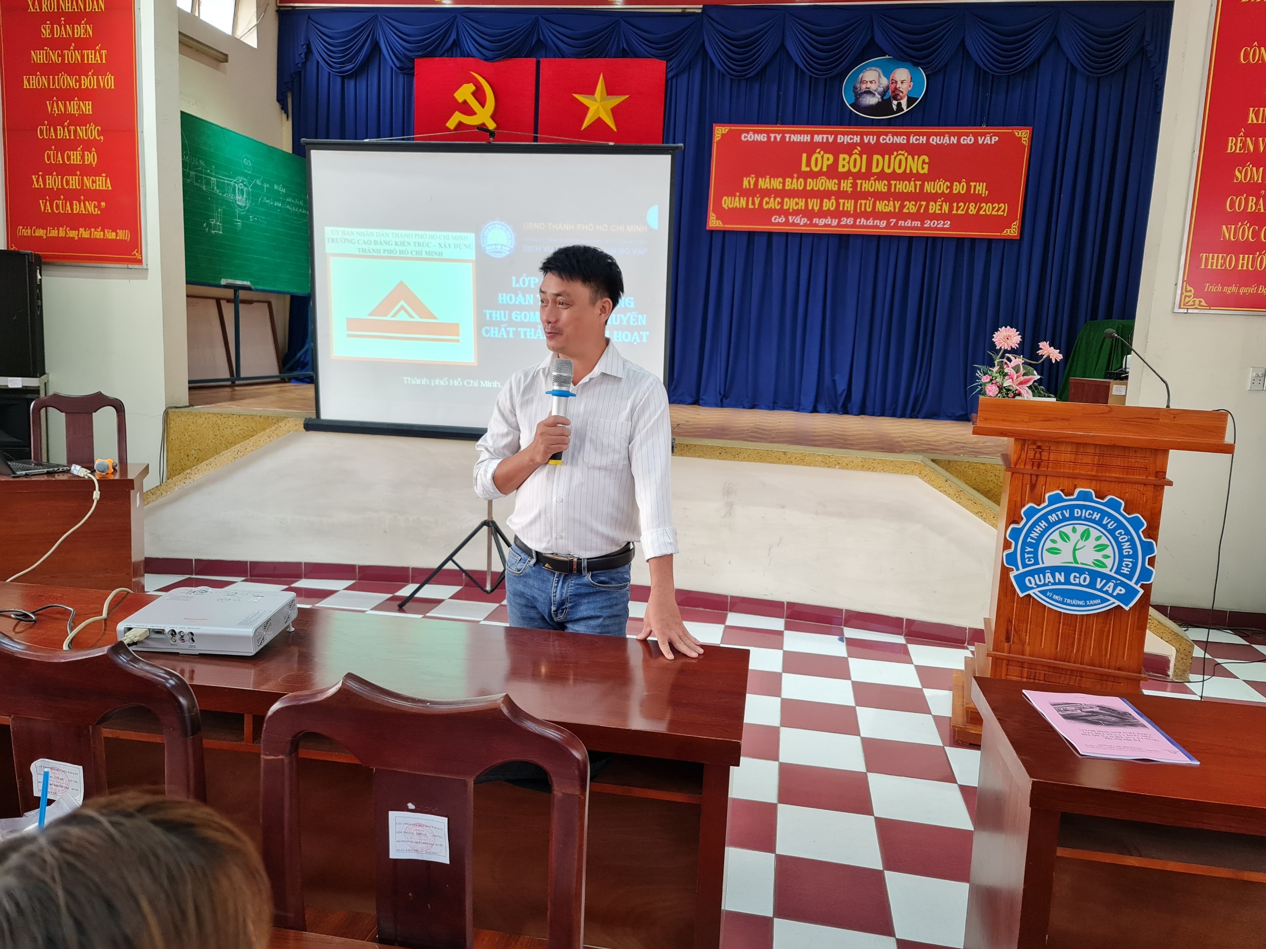 Nhằm nâng cao trình độ tay nghề trong công tác duy tu bảo dưỡng hệ thống thoát nước cũng như các công tác thu gom, vận chuyển chất thải rắn sinh hoạt. Công ty TNHH MTV Dịch vụ công ích quận Gò Vấp phối hợp cùng trường Cao đẳng Kiến trúc Xây dựng TP.HCM tổ chức lớp đào tạo bồi dưỡng hoản thiện kỹ năng bảo dưỡng hệ thống thoát nước đô thị, quản lý các dịch vụ đô thị diễn ra tại công ty. Thời gian đào tạo bồi dưỡng từ ngày 26/07/2022 đến ngày 12/08/2022. Số lượng người lao động tham gia lớp học là 166 người